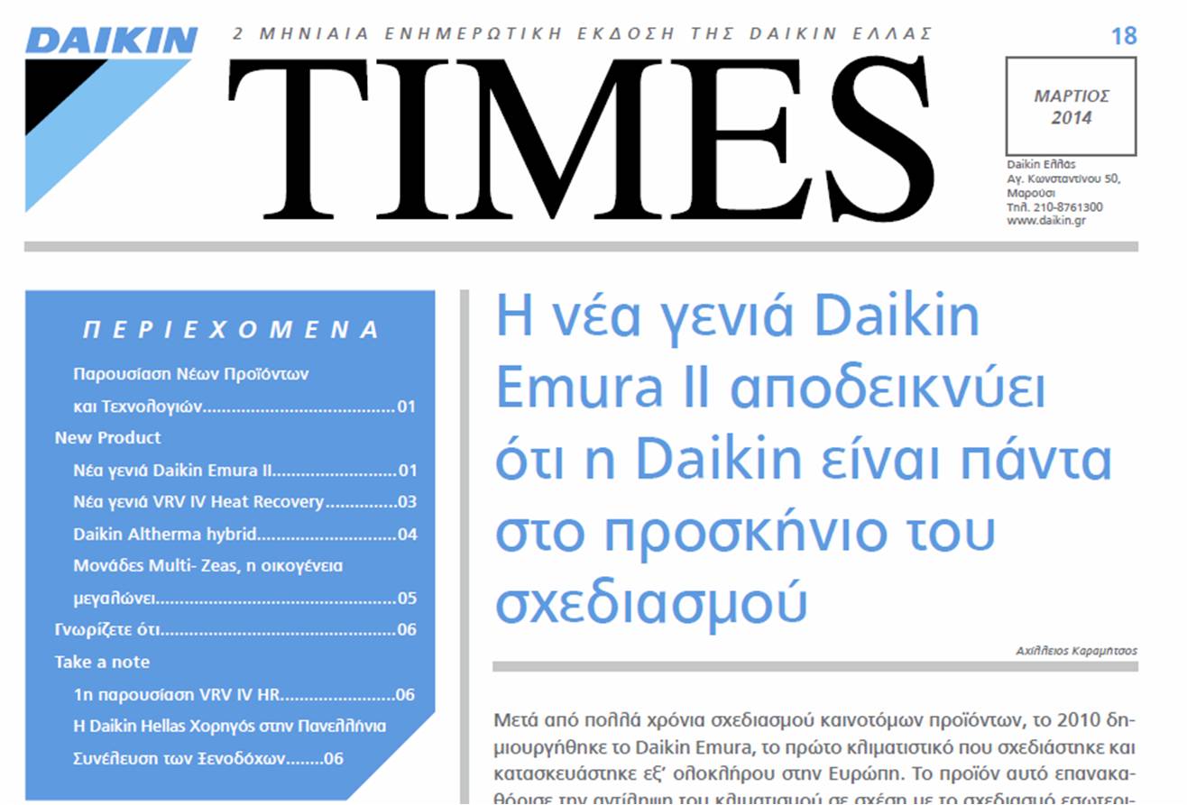 Μόλις κυκλοφόρησε το τεύχος 18 των DAIKIN Times. Η συγκεκριμένη εφημερίδα εκδίδεται σε ηλεκτρονική μορφή από τη Daikin